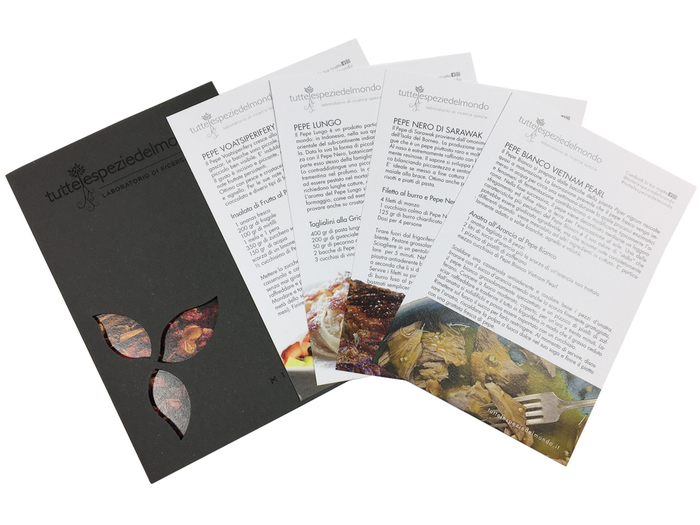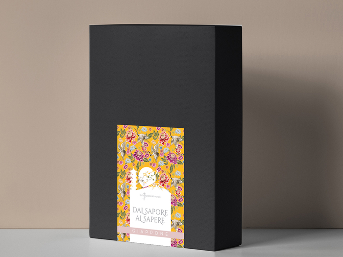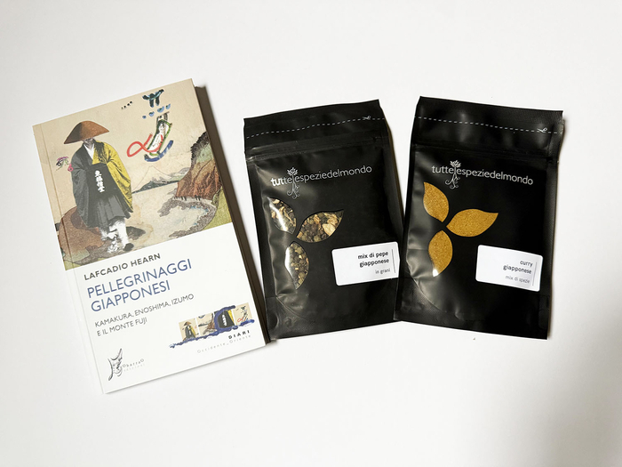 In questo box trovate: il mix di pepe giapponese e il curry giapponese con un'elegante cartellina nera che raccoglie ricette e suggerimenti d'uso, unitamente al libro "Pellegrinaggi Giapponesi".
